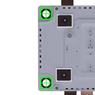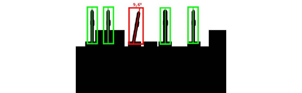 De nauwkeurige inspectie van grote componenten met behulp van 2D-cameratechnologie is een uitdaging. Dit komt enerzijds door het gebrek aan 3D-informatie en anderzijds door de eisen aan de camera en optica. Wij pakken deze uitdagingen aan door gebruik te maken van speciale telecentrische lenzen met een groot gezichtsveld. Daarnaast vertrouwen wij op de nieuwste cameratechnologieën en bereiken zo nieuwe mogelijkheden in precisie en resolutie. Daarnaast gebruiken we de 3D-informatie van de overige teststations om de uitlijning van het meetvlak verder te optimaliseren.