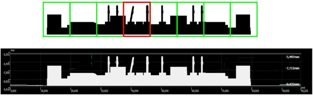 Lijnsensoren zijn een effectieve en kosteneffectieve oplossing voor het inspecteren van 3D-kenmerken en volledige digitalisering van componenten. Wat vooral opvalt is de snelheid en nauwkeurigheid van de oppervlaktemeting. Door gebruik te maken van de nieuwste lichtsectiesensoren zijn ook zeer nauwkeurige metingen mogelijk voor meerlaagse, reflecterende en transparante materialen.