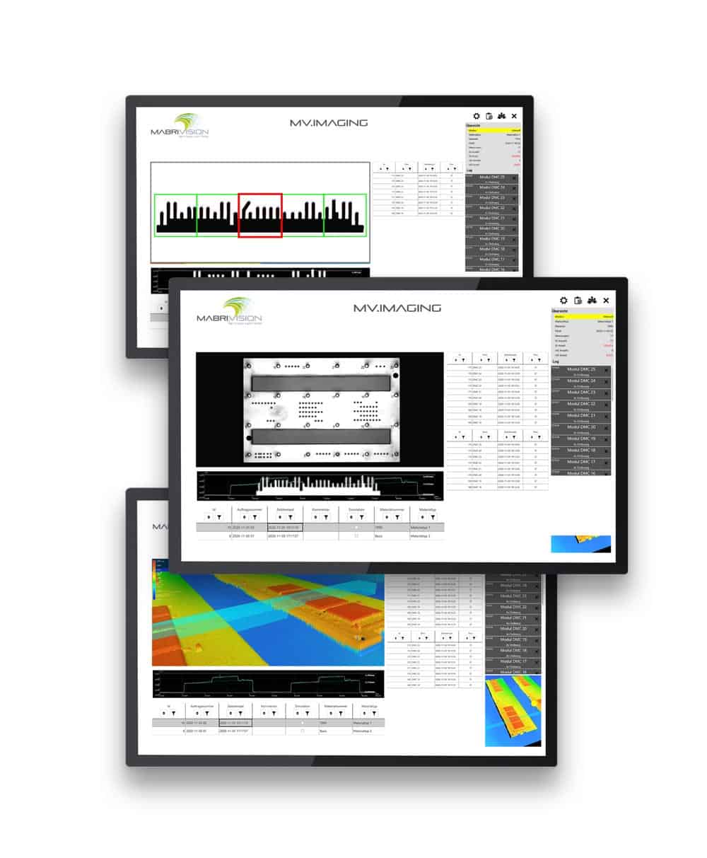 Die MABRI.VISION Softwareplattform MV.IMAGING ist auf maximale Flexibilität ausgelegt. Unterschiedliche Module aus den Bereichen Interface, Datenbank und Auswertungen können nach Bedarf integriert und den Anforderungen Ihrer Prüfungen angepasst werden.